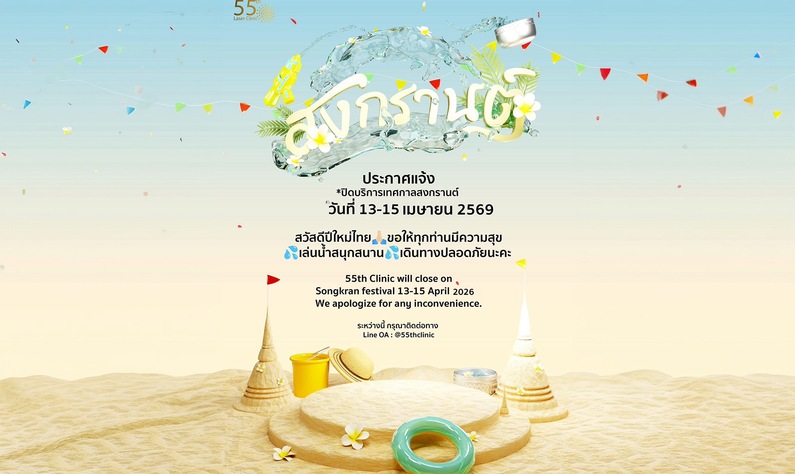 ประกาศแจ้งปิดบริการวันสงกรานต์ 13-15 เมษายน 2569