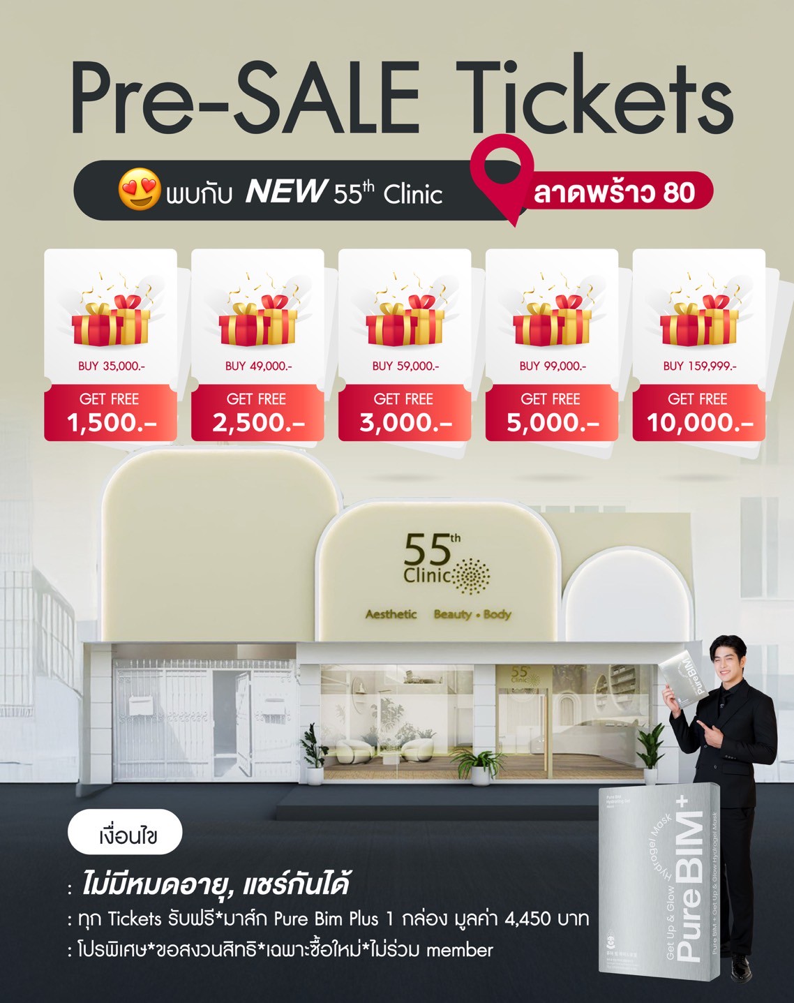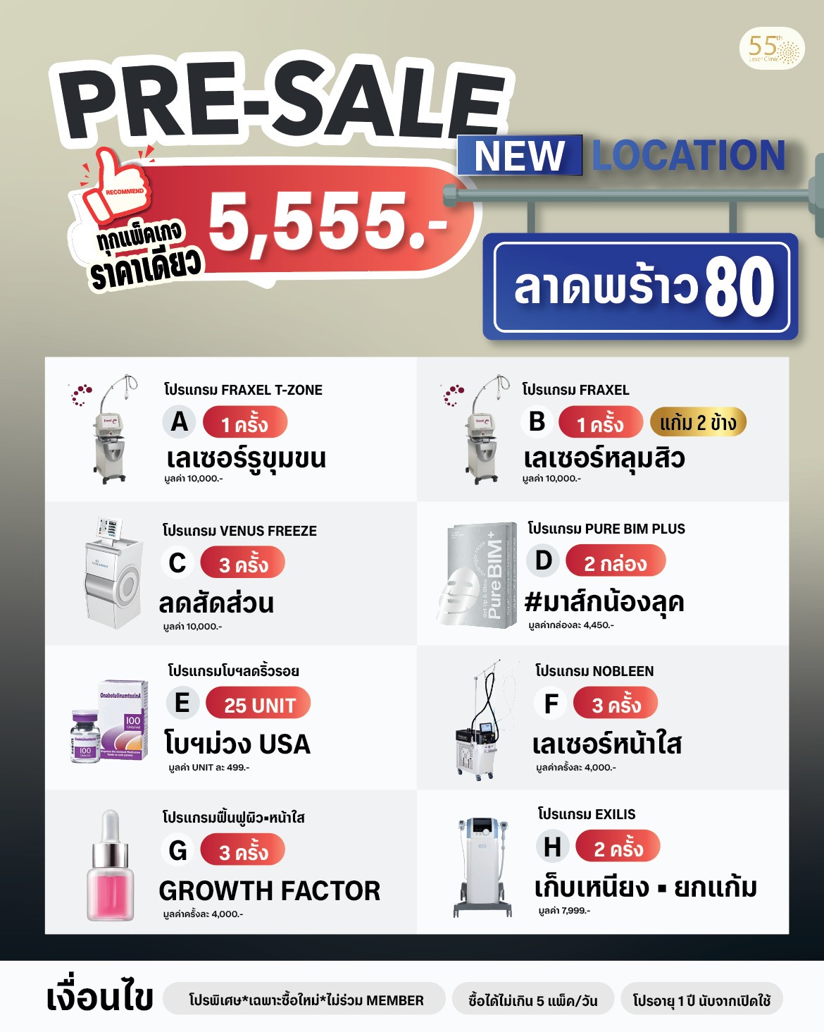 ฉลองคลินิกย้ายมา "ลาดพร้าว 80" ด้วยโปรสุดพิเศษที่ห้ามพลาด!PRE-SALE TICKETS สุดคุ้ม! - เริ่มต้นเพียง 5,555 บาท พร้อมรับสิทธิพิเศษมากมาย