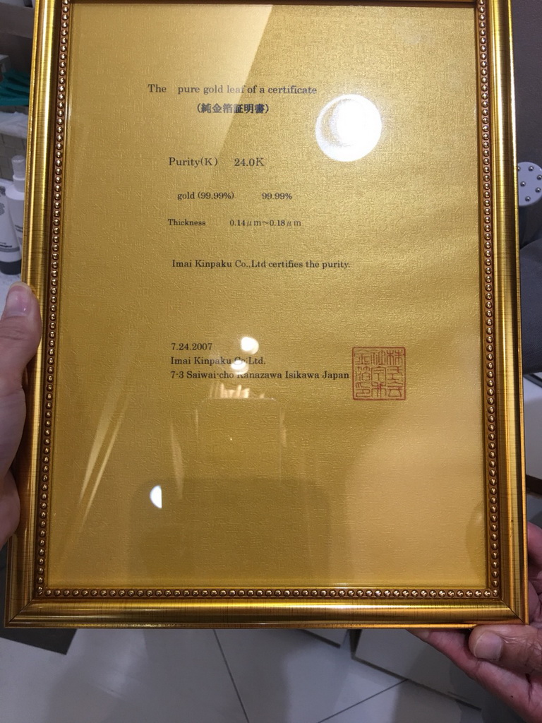 เมื่อผิวหน้าพร้อมแล้วก็เข้าสู่ขั้นตอนครึ่งหลัง นั่นก็คือการมาร์คหน้าด้วยทองคำบริสุทธิ์ 99.99% อิอิ