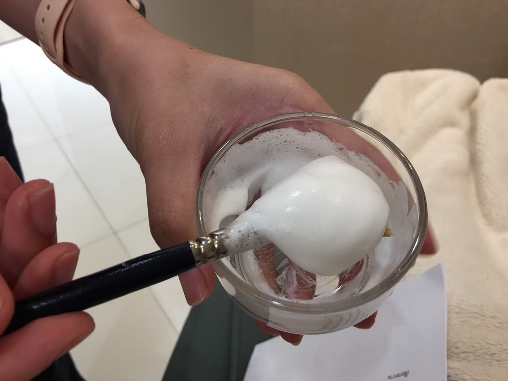 จากที่เป็นผง พอเติมน้ำลงไป จะเป็นฟองหนานุ่มแบบนี้ค่ะ