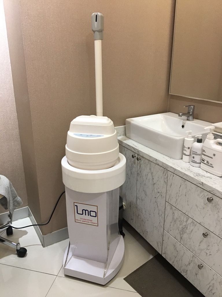 จากนั้นก็ถึงคิวของเครื่อง UMO Nanomist  เทคโนโลยีคลื่นอัลตร้าโซนิค ทำให้โมเลกุลของน้ำแตกตัวเป็นละอองขนาดนาโน และไอออนประจุลบในปริมาณมาก ให้ความเย็นสดชื่น