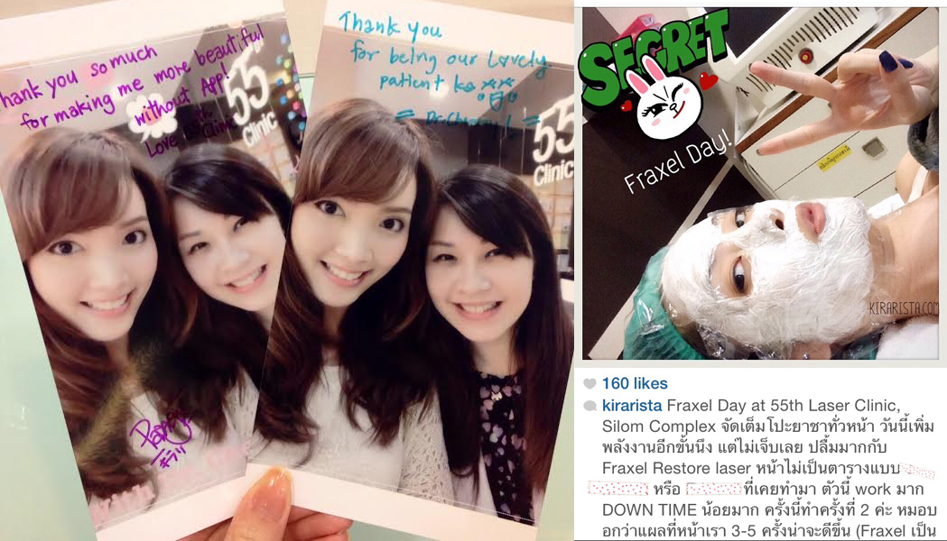 ( ขอบคุณ เครดิตภาพจากคุณแป้ง คนไข้ที่น่ารักของหมอจาก Blog & Fb Page Kirarista และอนุญาตให้แชร์ภาพประกอบการทำ Fraxel ที่ 55th Clinic นะคะ ^^ )
