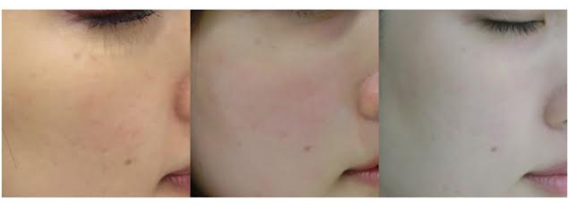 ดังนั้นผลที่นึกภาพตามหมอง่ายๆคือ แสงเจาะรูเล็กๆใต้ผิวเรา ทำให้รูขุมขนละเอียดขึ้น เกิดการสร้างผิวใหม่ที่แข็งแรงขึ้นจากการสร้างเส้นใยคอลลาเจนลึกประมาณ 1,500 ไมครอน แสงที่ผ่านผิวหนังทีละชั้นทำให้สามารถทะลุพังผืดที่เกิดจากการเรียงตัวของผิวที่ไม่เป็นระเบียบบริเวณแผลเป็นเก่า & ช่วยจัดโครงสร้างให้เกิดการเรียงตัวของเส้นใยคอลลาเจนที่เกิดขึ้นใหม่อย่างเป็นระเบียบ พร้อมทั้งผลัดเซลล์ผิวและการกระจายเม็ดสีผิว เรียบเนียนขึ้น  | |  |