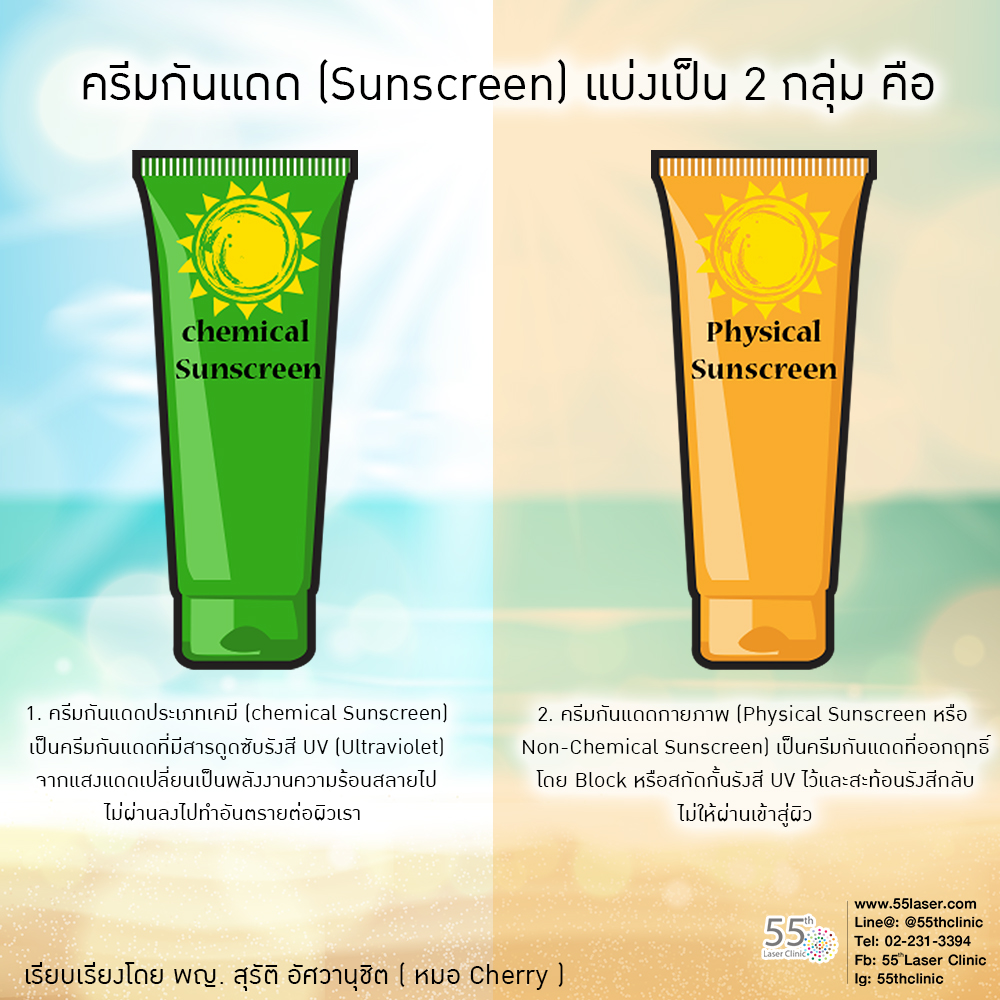 ครีมกันแดด (Sunscreen) แบ่งเป็น 2 กลุ่ม คือ