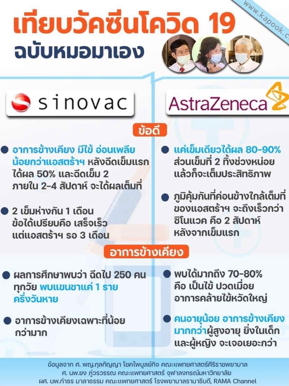 สุดท้ายนี้ หมอพิมพ์มายาว ตามที่คิดว่า รวบรวมได้จากคนรอบข้างที่สงสัยและอยากทราบประสบการณ์การฉีดวัคซีน เท่าที่นึกออกนะคะ